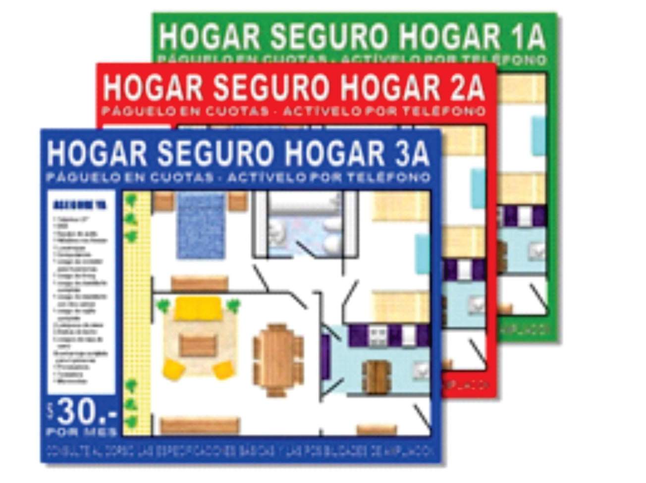 Seguro para el hogar puesto en un blister y ofrecido en las góndolas de los centros de compra.